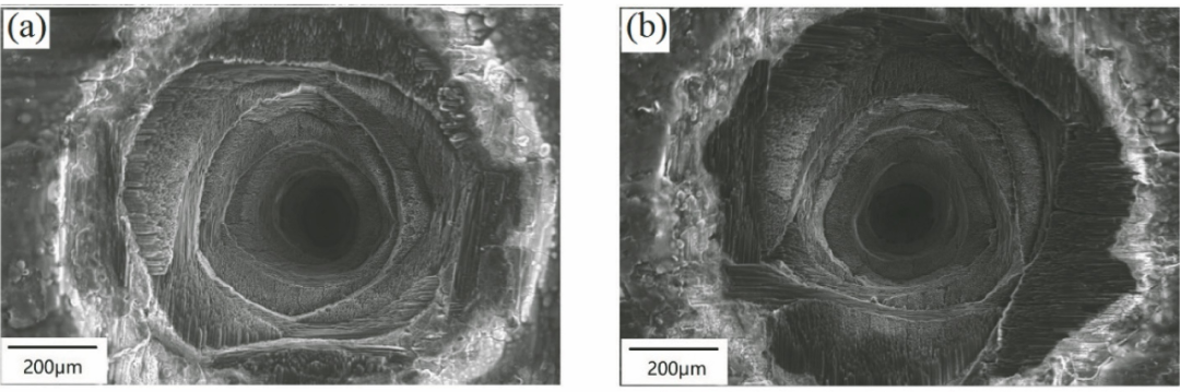 圖3 不同波長激光對(duì)纖維增強(qiáng)材料的作用效果對(duì)比:(a)紅外激光;(b)紫外激光